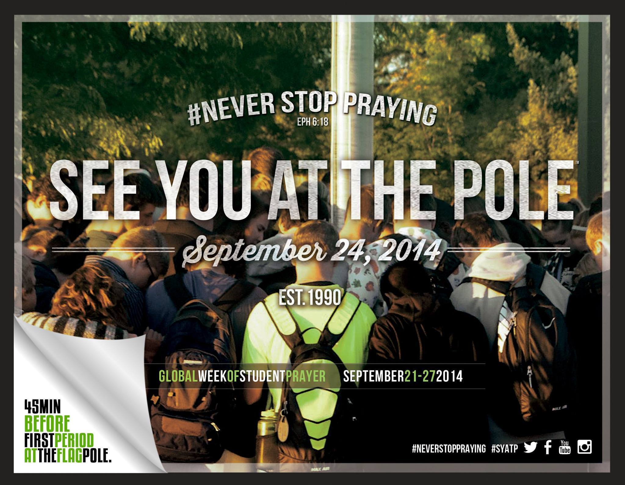 Posted on September 24, 2014 by Howe EnterpriseSee You At The Pole Students all across America will be praying at the flag poles at their schools today. Howe’s flag pole prayer will begin at 7:15 AM.